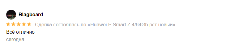 Сделка состоялась по "Huawei P Smart Z 4/64Gb рст новый"