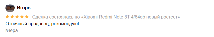 Сделка состоялась по "Xiaomi Redmi Note 8T 4/64gb новый ростест"